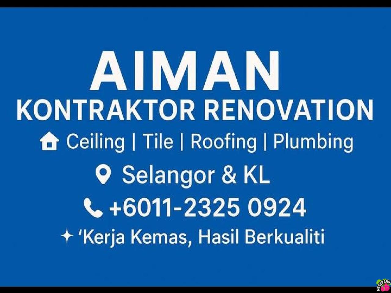 π AIMAN RENOVATION KL SELANGOR π Anda nak ubah suai rumah supaya lebih selesa dan cantik? Kami sedia membantu dari A sampai Z! Kami merupakan tukang berpengalaman dalam kerja-kerja ubah suai rumah di kawasan anda. Kami boleh bantu dengan: Perkhidmatan yang ditawarkan: β KERJA-KERJA PAIP β KERJA-KERJA BUMBUNG β BAIKI MA...